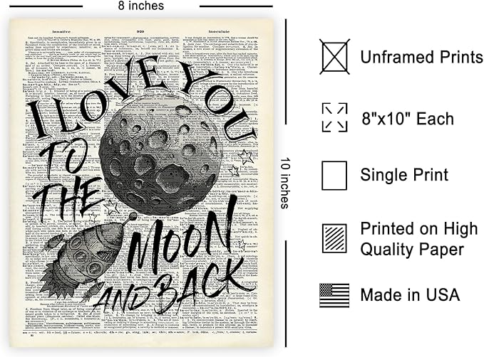 Poster Master Dictionary Art Poster - I Love You To The Moon and Back Print - Motivational Art - Gift for Him, Her & Lovers - Romantic Decor for Dorm, Bedroom or Living Room - 8x10 UNFRAMED Wall Art