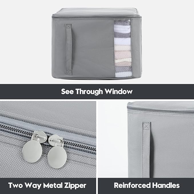 Comforter Storage Bags, Durable Oxford Fabric Clothes Organizer for Closet, Washable Collapsible Large Storage Containers for Clothing Blanket Linen Bedding, 2 Pack (18 gallon x 2, Grey)