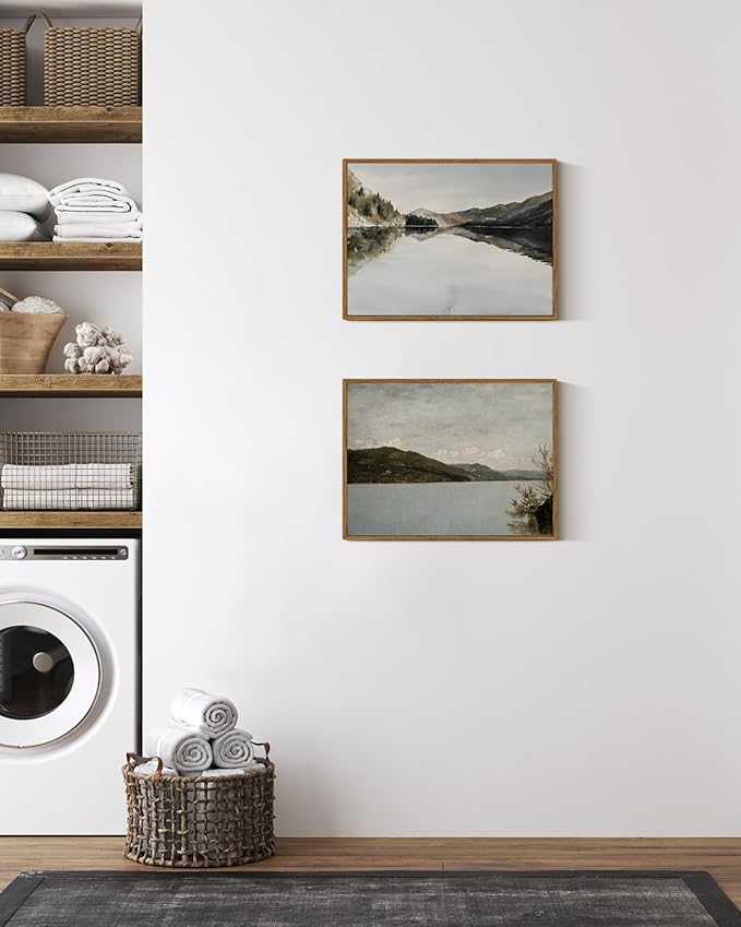 InSimSea Framed Canvas Wall Art Vintage Decor, Classical Landscape Paintings Artwork, Vintage Nature Decor, Retro Wall Decoration for Bedroom Living Room Bathroom, 12"x16"