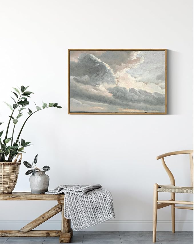 InSimSea Framed Canvas Wall Art Vintage Decor, Nature Wall Decor, Large Sky Clouds Sunset Wall Art Prints for Living Room, Classical Retro Paintings for Bedroom Office Home Decoration, 16"x24"