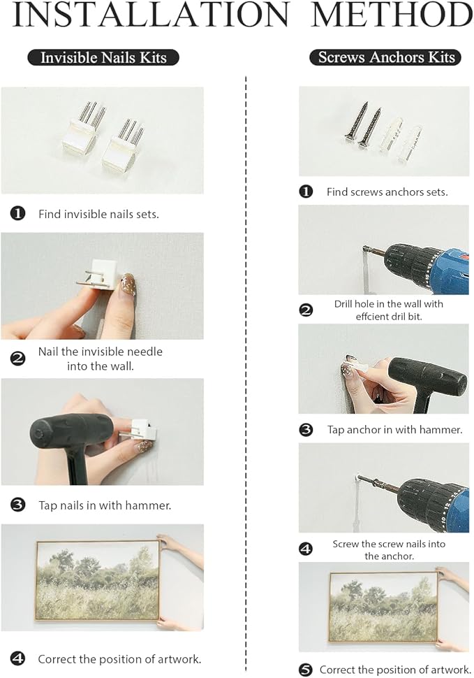 - Ready To Hang : This framed canvas art wall decor measures 24x36 inches, comes with 2 hooks which makes it easy to hang. Please read the installation instruction image before nailing the hook on your wall. (This item is handmade, so please allow the size error to be about 0.2 inches)