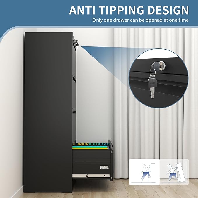- 【Unique Design】:The upgraded lock system possesses 1 lock & 2 keys,Built-in interlock system secures all drawers to make sure safe file, with folding key lock convenient to carry. With all drawers interlocking mechanism design, it will prevent tipping.