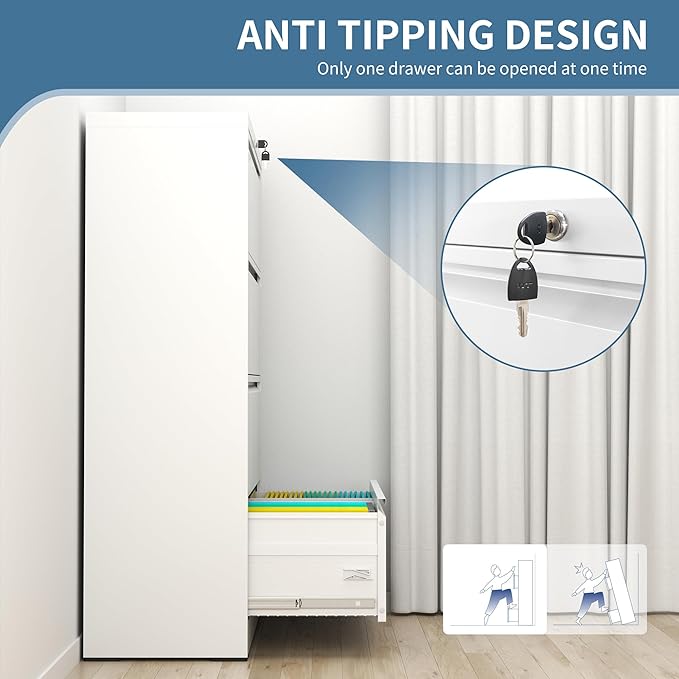 - 【Unique Design】:The upgraded lock system possesses 1 lock & 2 keys,Built-in interlock system secures all drawers to make sure safe file, with folding key lock convenient to carry. With all drawers interlocking mechanism design, it will prevent tipping.