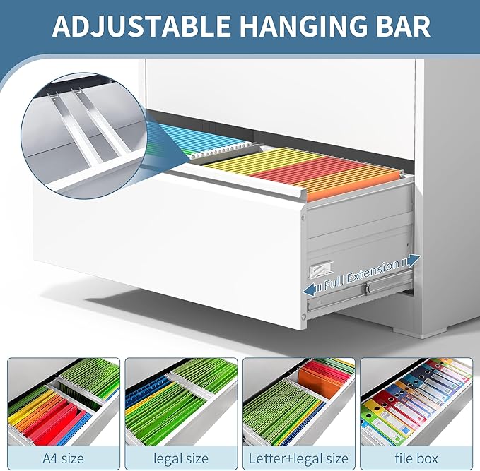 - 【High Quality】: Lateral file cabinet with lock is made of thick high-strength cold-rolled solid all-steel material.Powder-coated construction making the heavy duty file cabinet immune to corrosion and rust which is very durable and stable for your daily use at home and office.Due to the metal surface, metal storage cabinets are easy to clean and maintain. The filing cabinet only require a damp cloth or cleaning agent to wipe them down.