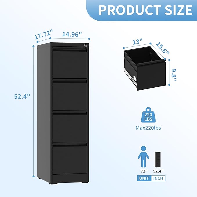 - ◉【Heavy-Duty & Long-lasting】The file cabinets are constructed from high-strength cold-rolled steel. You can use it for many years to store your various files. With a max load capacity of up to 220lbs, the metal cabinet is sturdy enough to hold printers on the top.