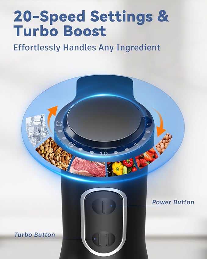 - PRECISE CONTROL: 1-20 stepless speed control, just follow your intuition for the results you want. The turbo boost mode allows for the highest grinding speed. The comfygrip handle for LINKChef emulsion blender ensures a stable grip even when your hands are slightly wet, preventing any shaking or slipping sensation