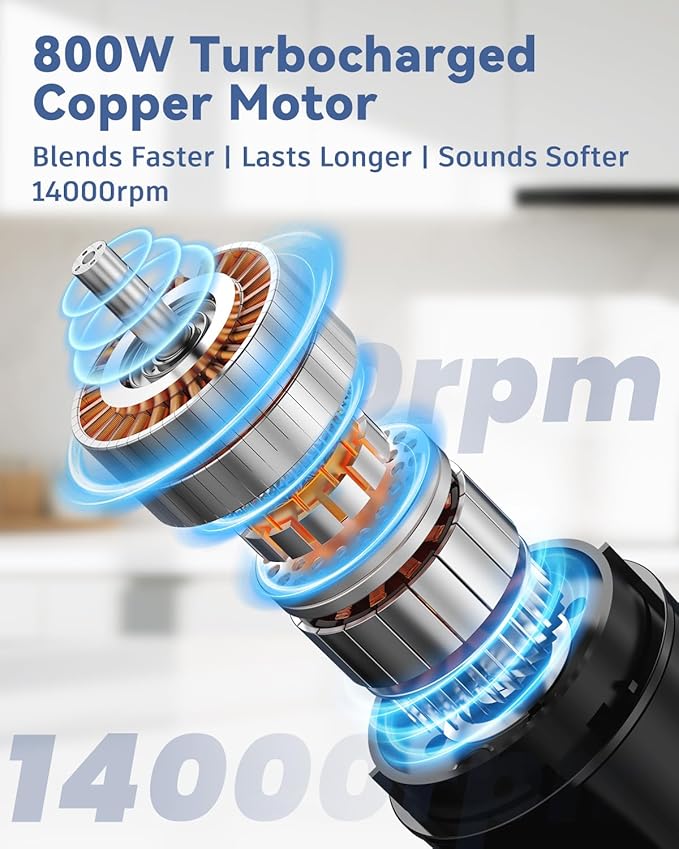 - POWERFUL PERFORMANCE AND DURABLE: 800W Heaviest dust copper motor paired with two professional Titanium steel 4 blade and ice crush blade rotation system can handle the toughest blending tasks effortlessly. LINKChef stick blender immersion quickly pulverizes tough meats, ice cubes, or frozen fruits, resulting in super smooth textures