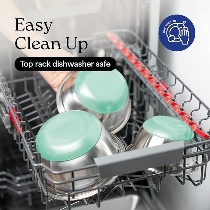 - Effortless Cleanup with Dishwasher Safe Design: Our stainless steel metal mixing bowls with lids are dishwasher safe, allowing you to focus on what you love - cooking and baking. Skip the tedious task of hand-washing and enjoy more time to savor your delicious creations. This convenient feature is especially beneficial for home chefs desiring practicality without compromising on the professional quality and precision of your kitchen tools.