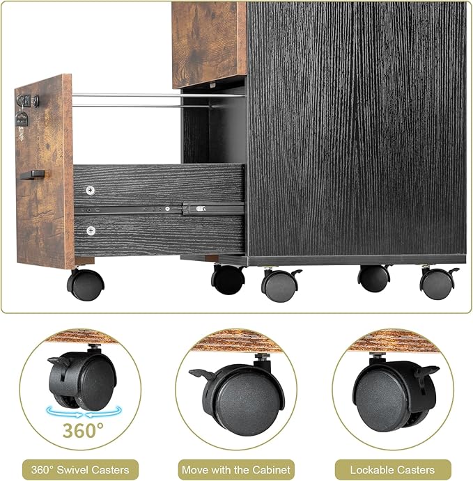 - 【Stable and Movable】With five wheels with brakes, including one in the center for added stability, you can move this mobile file cabinet anywhere you like without worrying about it tipping over
