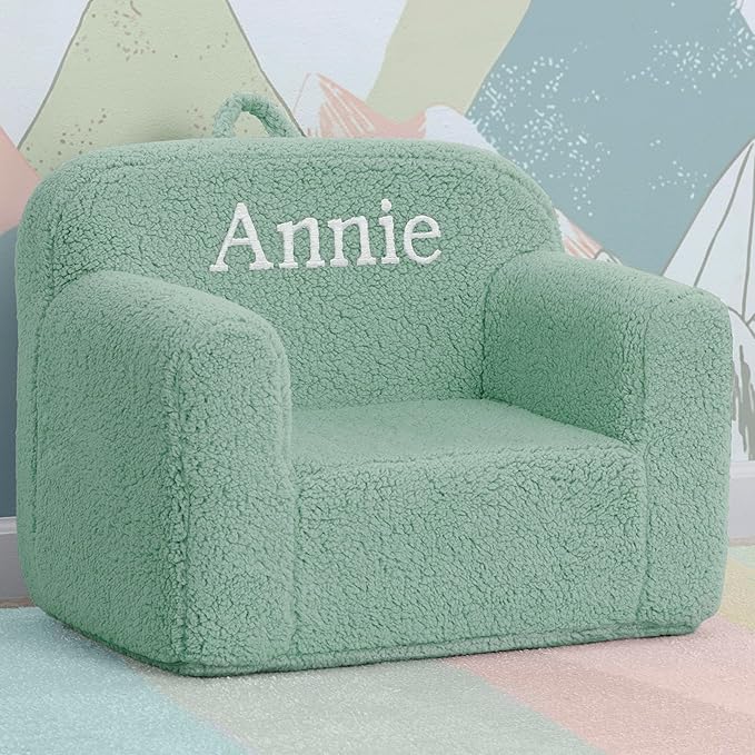 Delta Children Personalized Sherpa Cozee Chair - Customize with Name – Foam Kids Chair for Ages 18 Months and Up, Sage