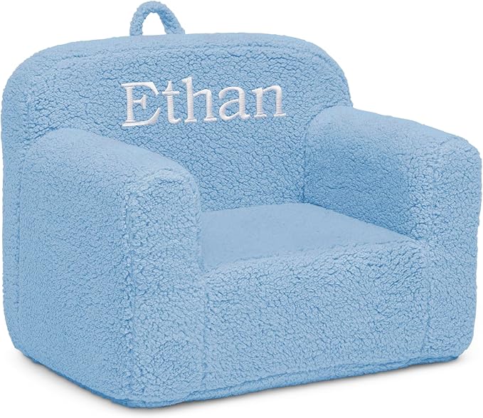 Delta Children Personalized Sherpa Cozee Chair - Customize with Name – Foam Kids Chair for Ages 18 Months and Up, Powder Blue