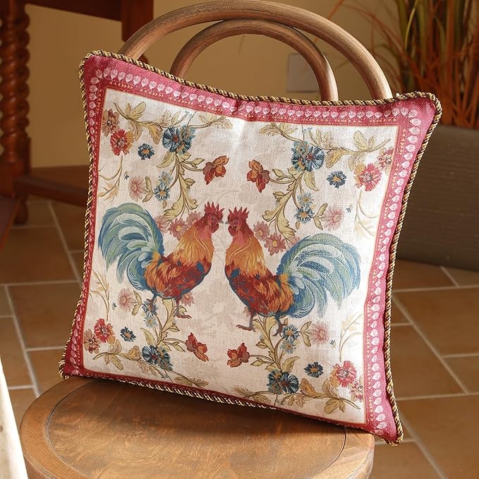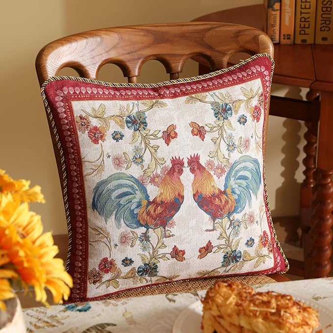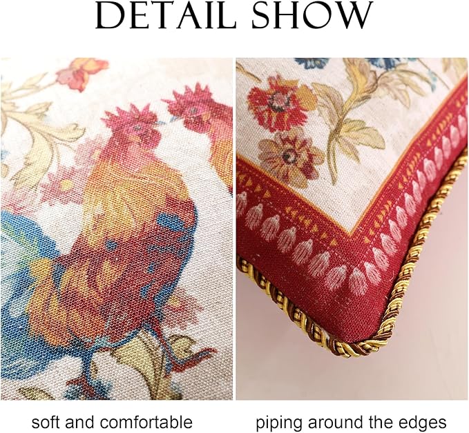 patdrea Designer Pack of 2 Square Throw Pillow Covers,Farmhouse Red Linen with Animals and Floral Pattern Pillows Cover,Decorative Pillowcases Cushion for Bed Living Room Outdoor Car,18"x18"