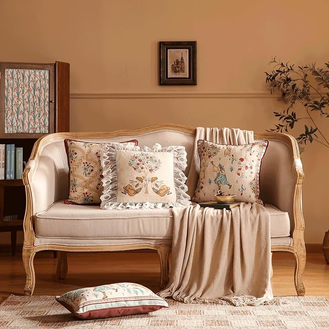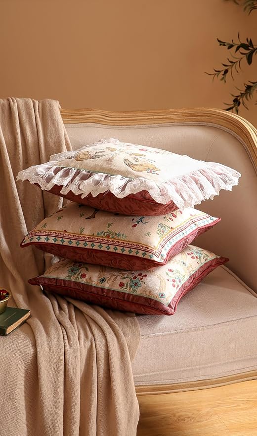 patdrea Designer Pack of 2 Square Throw Pillow Covers,Farmhouse Vintage Linen with Beige Ancient Idyll Pattern Pillows Cover,Decorative Pillowcases Cushion for Bed Living Room Outdoor Car,18"x18"