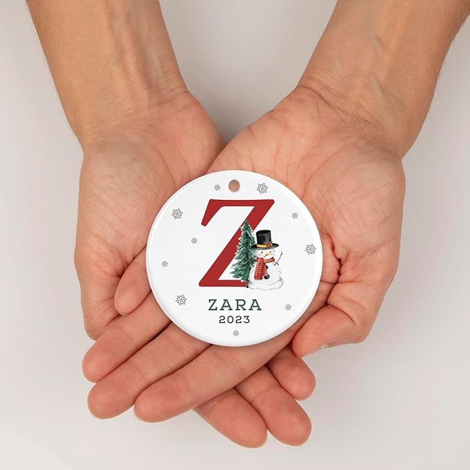 Andaz Press Personalized Christmas Ornaments, Custom Name, Initial Z Monogram Snowman 2.8" Ceramic Porcelain 2025 Christmas Ornament Keepsake for Kids, Boys, Girls, Christmas Initial Ornaments 1-Pack