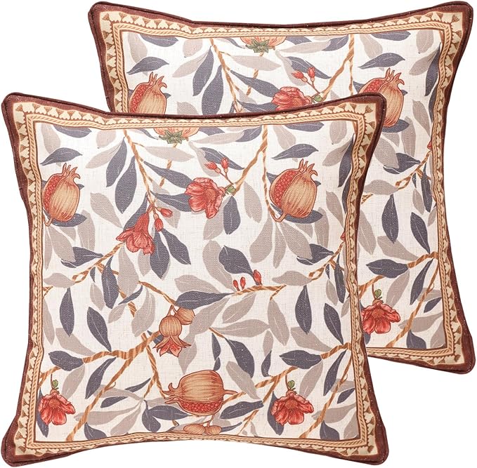 patdrea Designer Throw Pillow Covers Set of 2,Orange Farmhouse Rustic Linen with Pomegranate Fruit Pattern Pillow Covers,Decorative Square Pillowcases Cushion for Bed Living Room Outdoor,18"x18"
