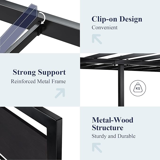 - Elevate Room Decor: The bed frame features a classic solid wood headboard with clean black lines that fit any style of room decor.