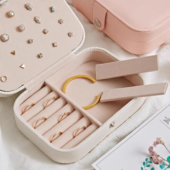 - 【PORTABLE JEWELRY BOX】 Our personalized travel jewelry box is perfect for all your needs - from everyday use to business trips and vacations. Its portability ensures the safety of your jewelry. With built-in pockets, necklace hooks, compartments, and ring box, this travel jewelry case promises ample space to keep your jewelry organized and tangle-free.