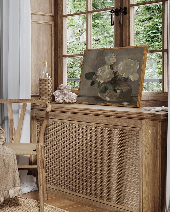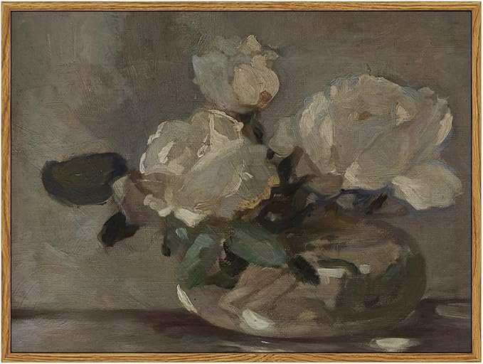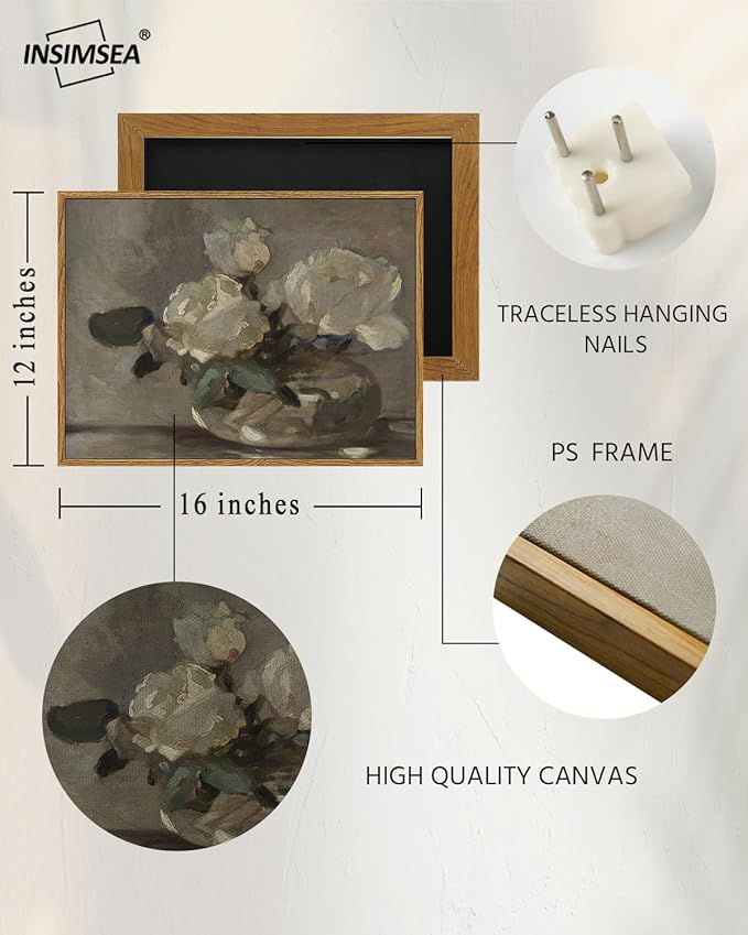 InSimSea Vintage Flower Canvas Wall Art Framed Wall Decorations, Mid Century Modern Wall Decor, Botanical Wall Art for Farmhouse Kitchen Office Bathroom Decor 12X16 Inch, Blumenstillleben