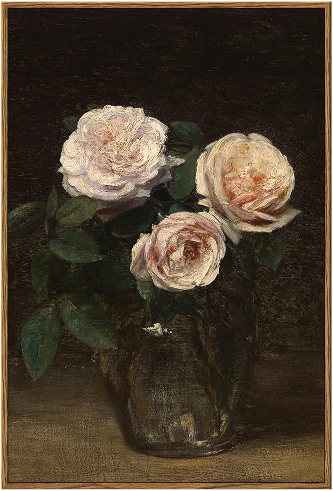InSimSea Framed Wall Art for Living Room Large Canvas Wall ArtRoses in Glass Vase Vintage Flower Prints Classical Oil Painting Colorful Multicolor Farmhouse Wall Decor for Bedroom Office16x24in