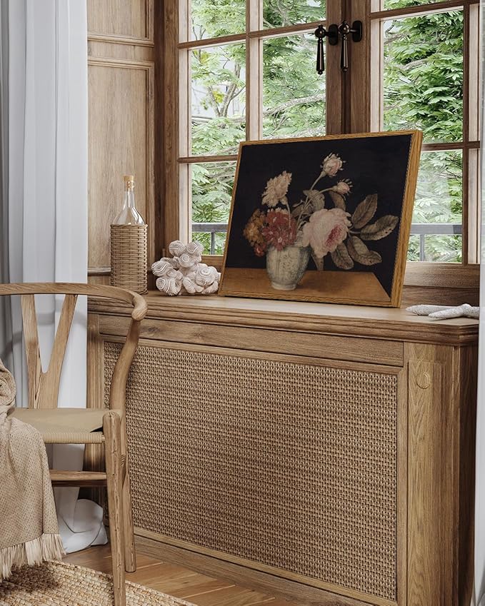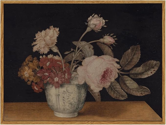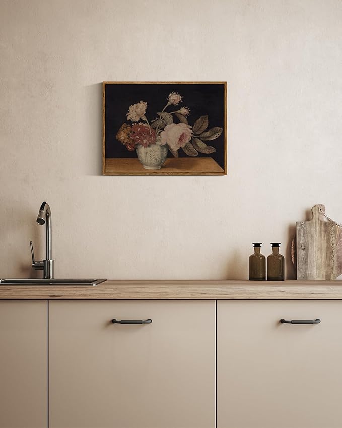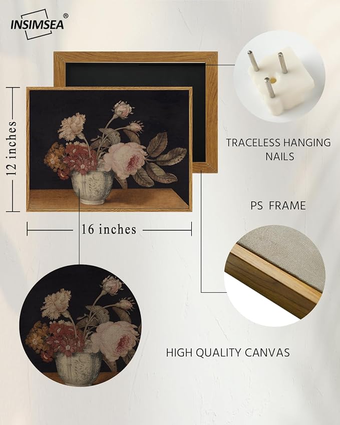 InSimSea Framed Wall Art for Living Room Decor Colorful Peonies Abstract Nature Vintage Wall Art Decorative Oil Painting Colorful Multicolor for Bedroom Office Decor 12x16in