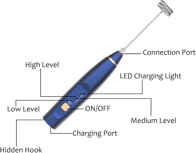 Milk Frother Handheld Foam Maker with 2 Stainless Stirring Head 3 Speed Rechargeable Electric Blender Milk Frother Wand Drink Mixer for Cappuccino Matcha Latte Hot Chocolate Protein Powder Egg (Blue)