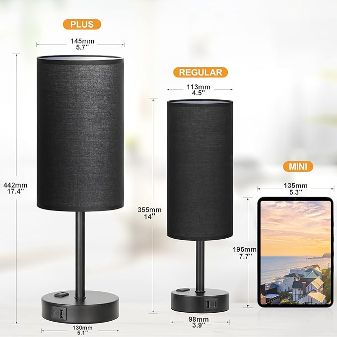 - 3. USB & USB-C Charging Ports and Outlet - Power 3 devices at once bedside lamp! With a usb-c port (5V/2.1A) and a usb-a port (5V/2.1A) and a outlet (120v) on the lamp for charging, getting your phones, pad, laptops, humidifier, kindle, headsets, speaker, earbuds and other electronics fully charged all from a single table lamp no matter if it is on or off. You'll love how easy it is to get to your device when you need it. Gone are the days of running to the nearest power outlet.