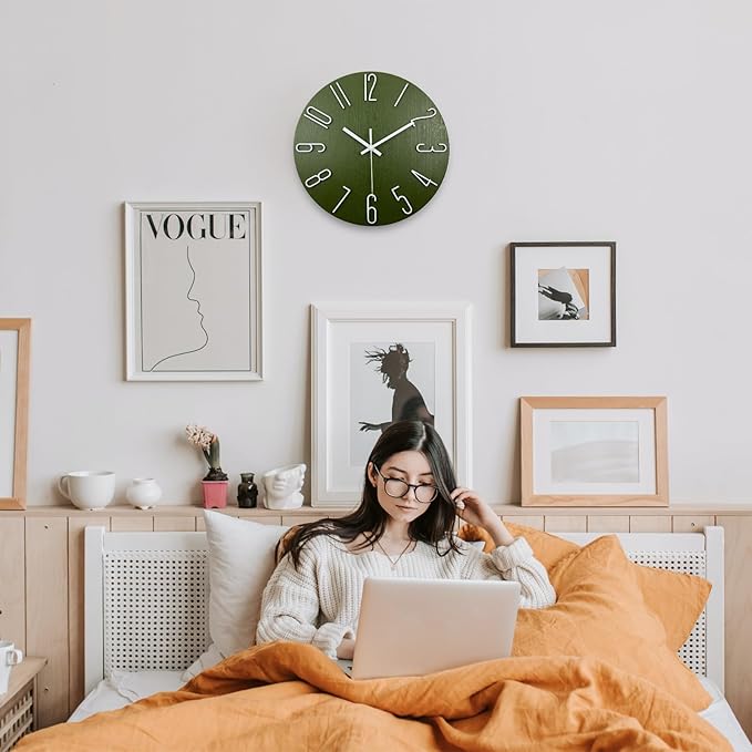 Faupugh Wall Clock 12 inch Silent Wall Clock, Battery Powered, Suitable for Home, Office, School, Kitchen, Bedroom, Living Room (Green)