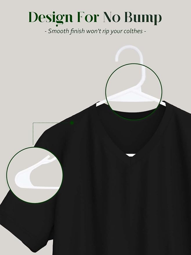 - Notched Shoulder Grooves: The Heshberg White Plastic Hangers are thoughtfully designed with notched shoulder grooves, ensuring your clothing items stay securely in place. Say goodbye to stretched-out collars and slipping straps.