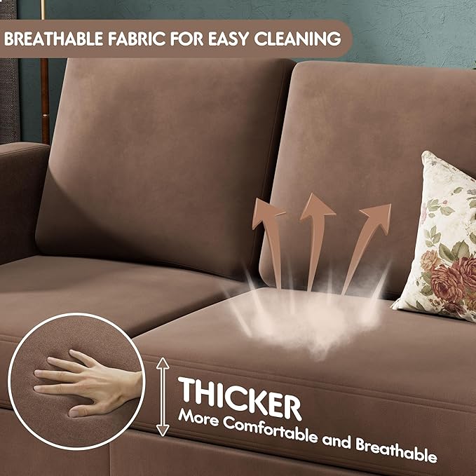 - [Durable & Washable] Constructed from solid natural wood, S-shaped alloy springs, and high elastic bandages, the couch is durable and stable for long-term use. The cushion covers are removable and washable, easy for you to keep clean