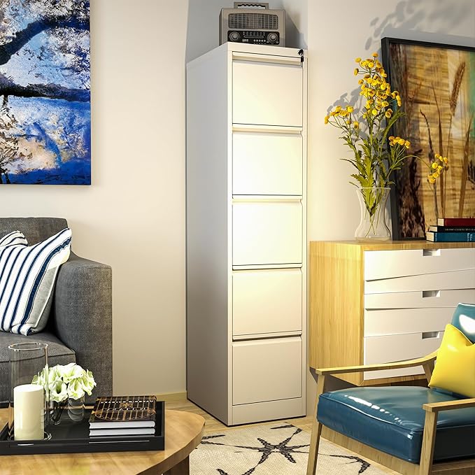 AQY 5 Drawer File Cabinet with Lock, Metal Filing Cabinets for Home Office, 18" Deep Heavy Duty Vertical Storage File Cabinets for Hanging A4/Letter/Legal Size Files, Assembly Require