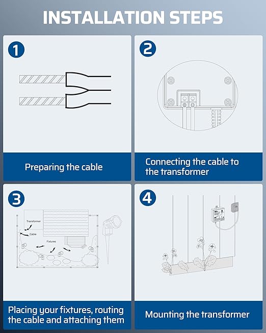 - [Wide Application] This outdoor low voltage transformer is used for 12V DC lamps, such as LED landscape lights, spotlights, garden lights, pathway lights, yard lights, deck lights, and garage lights; easily hidden, will not affect the appearance of your yard(Not for use with dimmers)