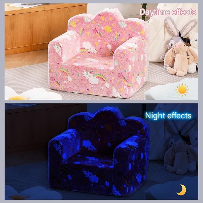 Tiita Kids Couch Plush Toddler Chair, Cloud-Like Glow in The Dark Kids Sofa Toddler Reading Chair with Washable Cover Carrying Handle, Convertible Children Sofa Chair for Girls and Boys