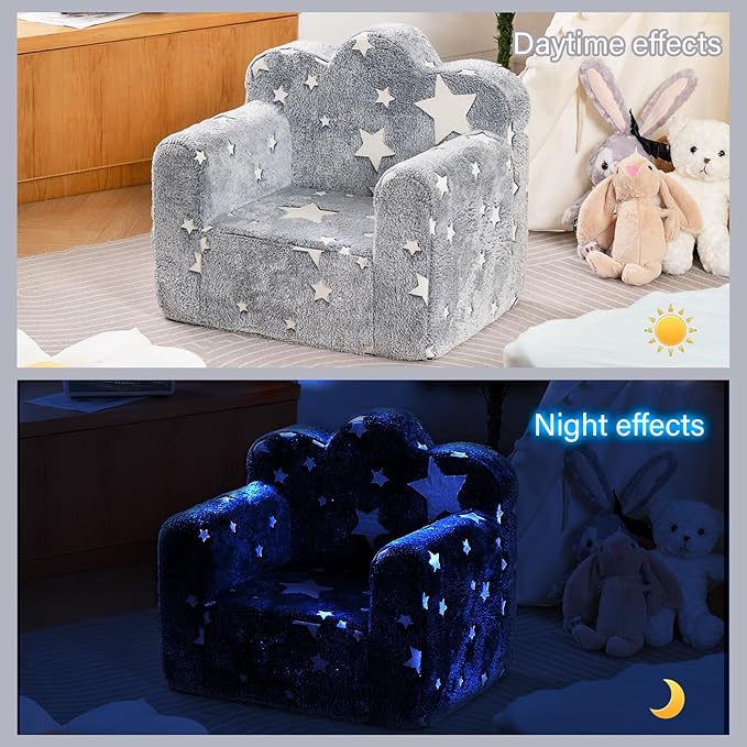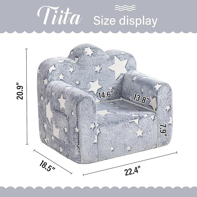 Tiita Kids Couch Plush Toddler Chair, Cloud-Like Glow in The Dark Kids Sofa Toddler Reading Chair with Washable Cover Carrying Handle, Convertible Children Sofa Chair for Girls and Boys