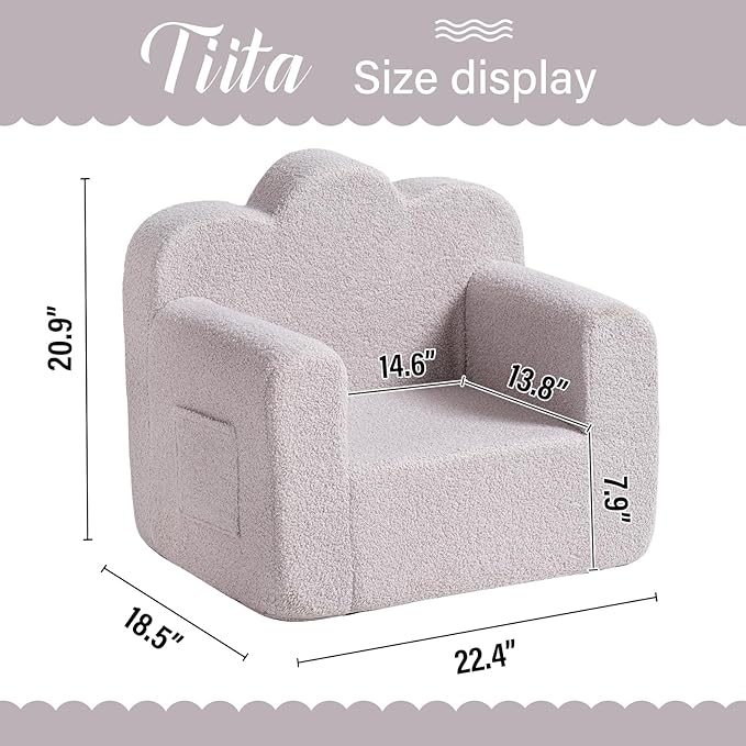 Tiita Kids Couch Sherpa Toddler Chair, Cloud-Like Comfy Kids Sofa Toddler Reading Chair with Washable Cover Carrying Handle, Convertible Children Sofa Chair for Girls and Boys