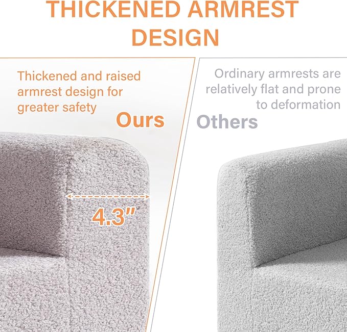 - 【Cloud-Like Back Support】This fluffy toddler chair is especially designed for little ones. Sitting in this fluffy toddler chair like snuggling a shining cloud. Toddler armchair cover is made of safe & skin-friendly durable cotton, we've utilized upgraded high-density sponge to enhance the durability and reliability of the kids chair, ensuring optimal protection for your child. So they will play games, eat snacks, watch TV, reading or just lie down and rest on the sofa.