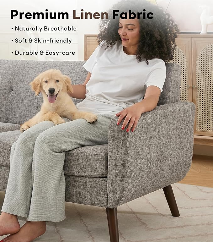 - TIMELESS APPEAL: Stylish tufted linen upholstery with a mid-century low-profile design brightens your whole home with modern craftsmanship and classic aesthetics. The small loveseat provides stylish and functional furniture for your apartment, adding more features to your home while decorating the room.