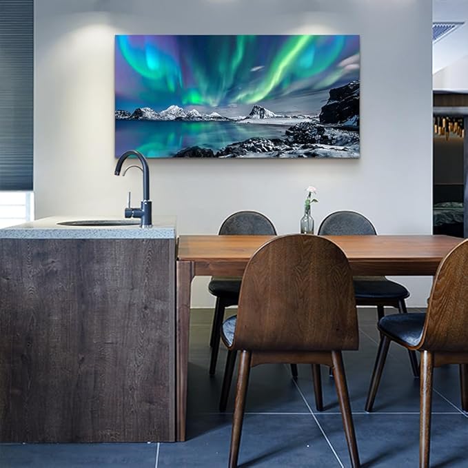 Wapluam Large Canvas Wall Art For Living Room Decorations For Bedroom Office Wall Decor Blue Aurora Scenery Painting On Stretched And Framed Wall Pictures Ready To Hang For Home Decor 24X48in