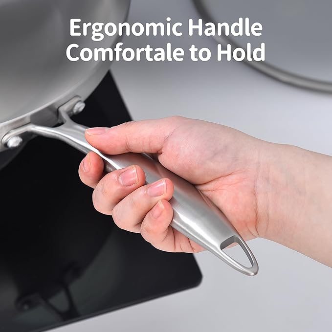 - 【Efficient Heating & Versatile Cooking】LOLYKITCH 3-ply stainless steel pan heats rapidly and evenly. Ideal for various cooking methods: low heat for eggs, medium-low for general cooking, and medium-high for searing meat. Avoid heating empty pan for optimal performance and longevity