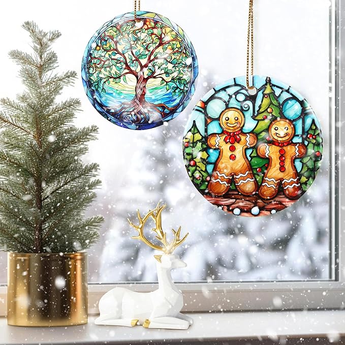 - 🌈This high quality ceramic Christmas ornament is beautifully designed for your holiday decorating needs. Measuring 2.8*2.8 inch with a sleek, shiny surface, it is guaranteed to add a touch of elegance to your tree.