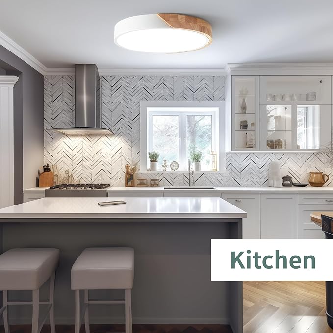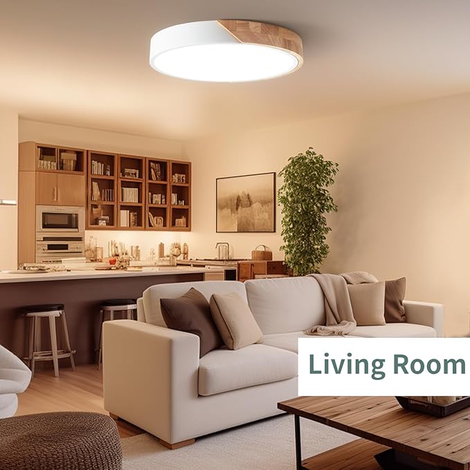 - 🌟【Modern Design】The Wheatronic LED overhead bedroom light fixture for ceiling lamp a sleek wood round frame. This bright flush mount ceiling light bring you comfortable in its light range, provide an energetic, soft lighting to your hallways, living rooms, foyers, kitchens, entryways, stairways, corridors, nursery rooms, kids' rooms, offices, and more.