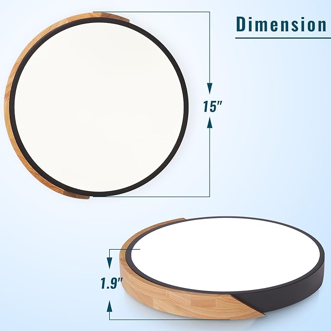 - 🌟【16 Inch 36W Round Ceiling Light Overhead】Black and Wood LED flush mount ceiling light features an integrated LED panel, with a power consumption of only 36W (equivalent to 120W), it delivers a bright output of up to 3600 Lumens. 16 inch LED interior light fixtures ceiling light to traditional lighting not only provides even and brilliant illumination but also helps you save significantly on electricity bills. Moreover, it offers a flicker-free, non-glare, and non-buzzing lighting experience, ensuring optimal eye comfort and reducing eye fatigue for your family.