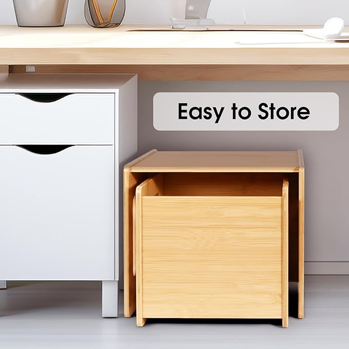 - Safe Material of Small Desk Chair: Handcrafted from solid bamboo and coated with child-safe paint for a smooth, burr-free, beautiful, durable finish. The smooth and waterproof surface makes it easy to wipe down
