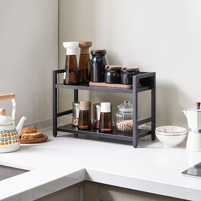 IBUYKE 2-Tier Spice Rack Industrial Counter Shelf Desktop Storage Organizer Standing Seasoning Rack for Countertop Kitchen Office Living Room Desktop Black UTLJ002B