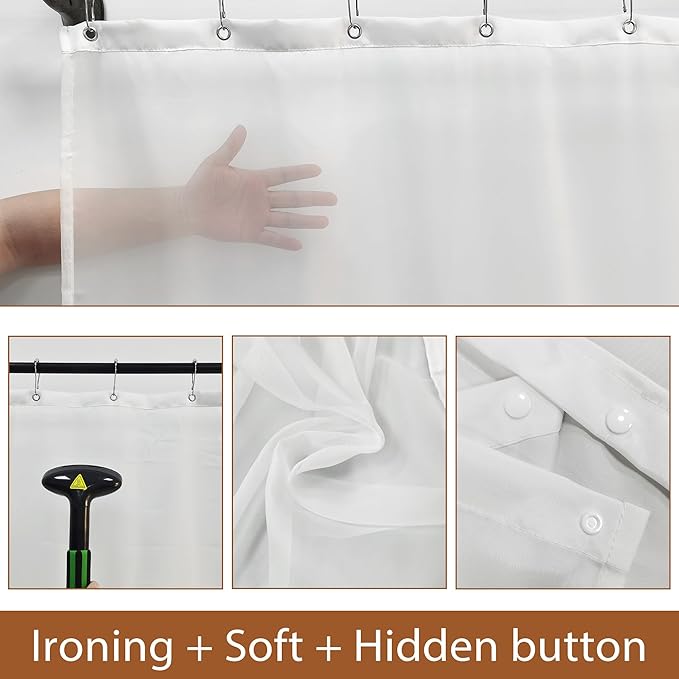 - 【Package】72"x72"(Width x Length) for full coverage with 12 solid metal buttonholes; 12 metal curtain hooks included.
