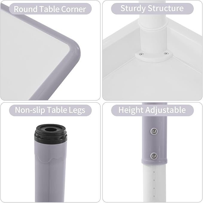 - 【THOUGHTFUL DESIGN】:The edge of this activity table is slightly raised to prevent the stationery from falling. The corners of the table are designed with arcs to reduce the damage to the baby due to bumps.