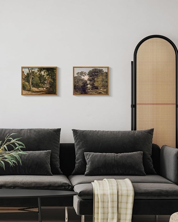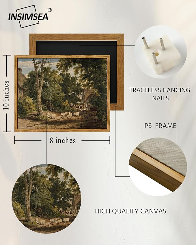 InSimSea Framed Canvas Wall Art Vintage Decor, Room Decor Classical Countryside Landscape Watercolor Painting Canvas Prints Wall Art for Living Room Badroom Farmhouse Bathroom Decor, 8"x10"