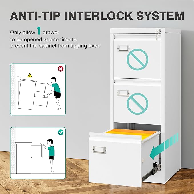 - ✔️☆【Anti-tilt Mechanism】: All drawer interlocking mechanisms are designed to prevent tilting and ensure that only one drawer can be opened at a time; the file cabinet has 1 lock and 2 foldable keys to effectively protect your private documents and valuables. It is suitable for various scenes such as offices,