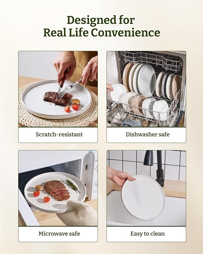- DISHWASHER AND MICROWAVE SAFE: Famiware dishware sets are made of sturdy stoneware. Each plate and bowl is dishwasher safe and microwave safe.