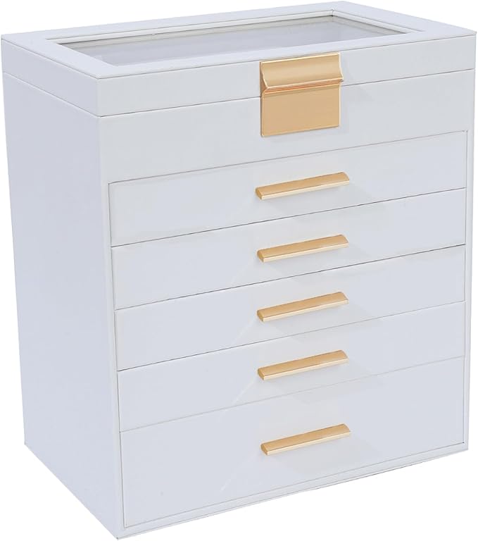 BOOVO Jewelry Box for Women, Black 6 Layer Large Jewelry Organizer with Glass Lid for Necklace, Bracelet, Earrings, Rings Storage, Jewelry Organizers and Storage for Womens Gift (Clear White, 6 layer)