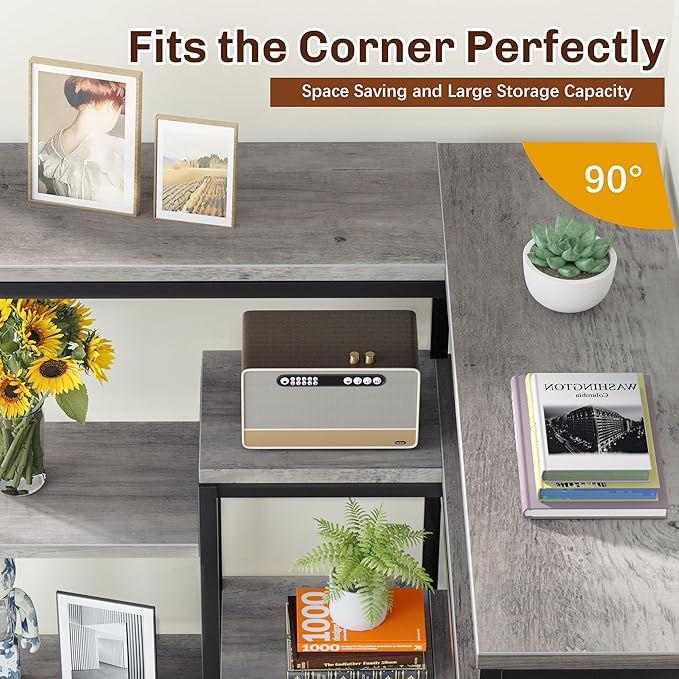- 【Space Saver Corner Bookcase】This 5-Tier industrial corner shelf can provide more storage space for books, plants, decorations, photos and more. Maximize the use of corner space and keep keep the corner tidy.You can put this 11 open shelves in the office, living room, bedroom.Our corner bookshelf can meet all your storage needs.